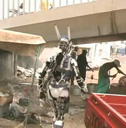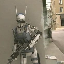 From The Embassy Visual Effects Inc., the creators of a fairly popular transforming Citroën car commerical, comes a surprisingly realistic video of a robot policing the streets of a developing nation. Directed by Neill Blomkamp, it’s shot as a kind of conceptual corporate advertisement.