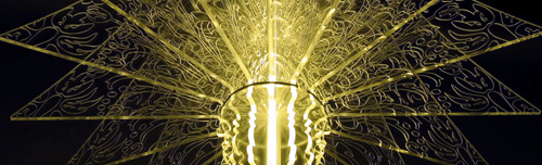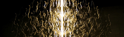 The Buro Vormkrijgers design studio, in addition to their clever Pong [video] and Orbit clocks, design innovative furniture and lighting – above is a chandelier and lamp, called Therese and Josephine, respectively. Their Cyclops lamp has two flourescent bulbs attached to an eye-like circular hinge in the middle, suspended from the ceiling on wire – pulling the hinge breaks the shape and switches the lamp off. Katana [video] is a vertical touch-sensitive high-intensity LED lamp, that can be detached and moved from its recharging base. Ceci looks like a light bulb whose glass is melting away, but hides its light source in the socket. Their Stealth chair looks downright badass; and an experiment in what they call Transfurniture actually swings into form as you sit on it [video]. Check out their portfolio and store: