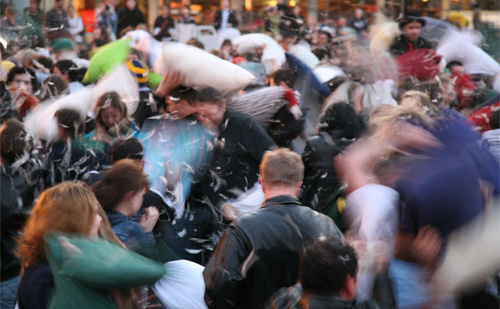 - Turn up at the arranged Pillow Fight Club venue with pillow hidden in a bag.