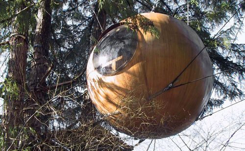 Not to harp on treehouses, but these are interesting too: fiberglass sphere structures available as DIY kits or made-to-order dwellings.