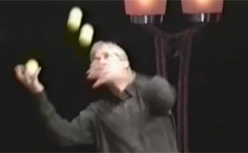 This clip may have made the rounds, but it didn’t make it to me. Chris Bliss, comedian, juggles three balls choreographed to a Beatles tune, basically, the juggling equivalent of playing a guitar with your teeth.