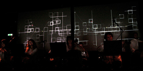 Using their heartbeats, the musicians control a computer composition and visualization environment. The musical score is generated in real time by the heartbeats of the musicians. They read and play this score from a computer screen placed in front of them.