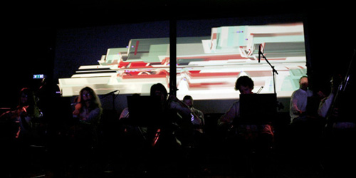 The Heart Chamber Orchestra (…) is an audiovisual performance. The orchestra consists of 12 classical musicians and the artist duo Terminalbeach.