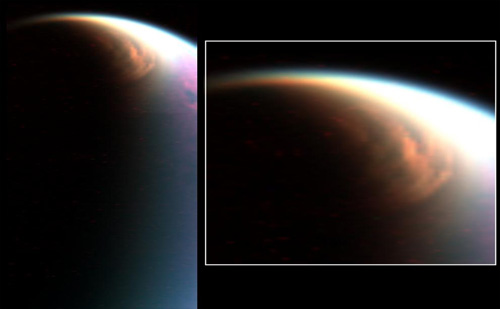 Such a cloud cover was expected, according to the atmospheric circulation models of Titan, but it had never been observed before with such details. The condensates may be the source of liquids that fill the lakes recently discovered by [Cassini’s] radar instrument.