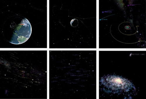 Our motivation was to create a framework for a real-time digital planetarium. With this framework, we’ve created a series of layers of objects across an enormous scale range, all on a single screen.
