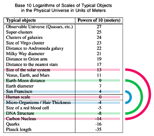 Scientists Chi-Wing Fu and Andrew Hanson develop a model for visualizing the degrees of scale between different functional levels of matter formation, ranging from the observable universe as a whole to one Planck length. Inspired by the “Powers of Ten” video, their system provides for an efficient method of graphically rendering the universe from the smallest known regions to the largest.