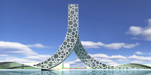 Proposed for construction in Shanghai to coincide w/ the 2010 World Expo. The Chinese character 人 (romanized “ren”) means person or people.
