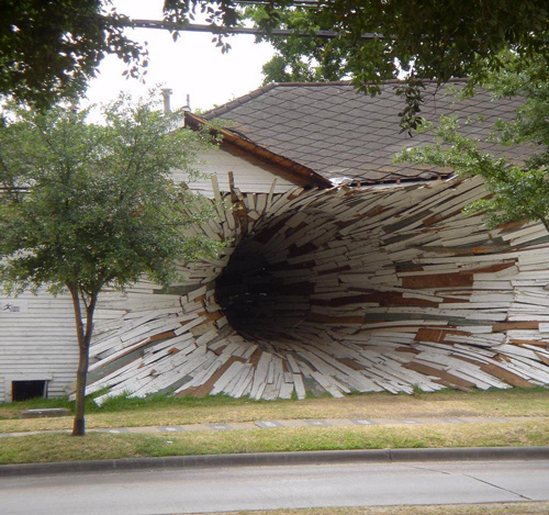 Created by Dan Havel and Dean Ruck from a soon-to-be-demolished house in Houston, Texas. Like Aaron Tang from designverb said, a perfect example of how creativity kicks in when time is running out.