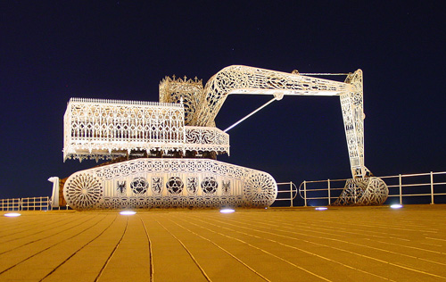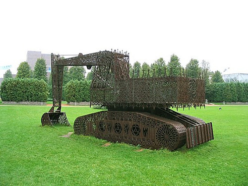 Wim Delvoye is the artist famous for his work in tattooing hogs, if you’re familiar (I was, barely). Many of the above images came from Le journal de Musarde and Everyone Forever.