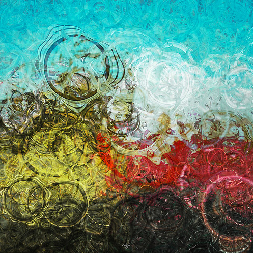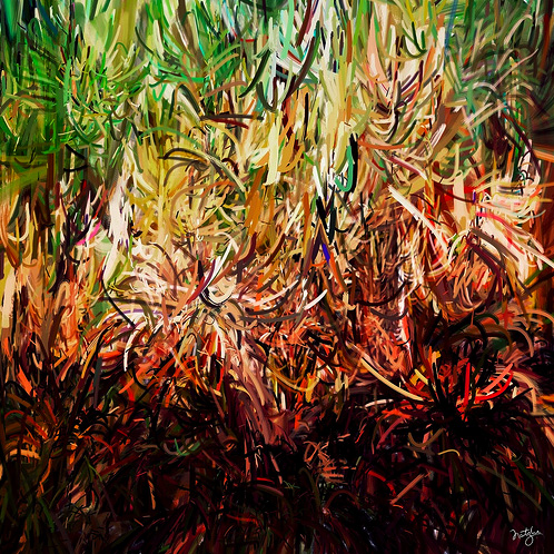 Erik Natzke’s generative paintings are made using Flash, sometimes from sampled photos and video and other times from scratch. He controls very specifically the environment in which his creations thrive, leaving the artwork’s specificities to the whim of the code. Generations of pixels live out their lives in quiet service of the master. Tons of pics and some video inside this post.