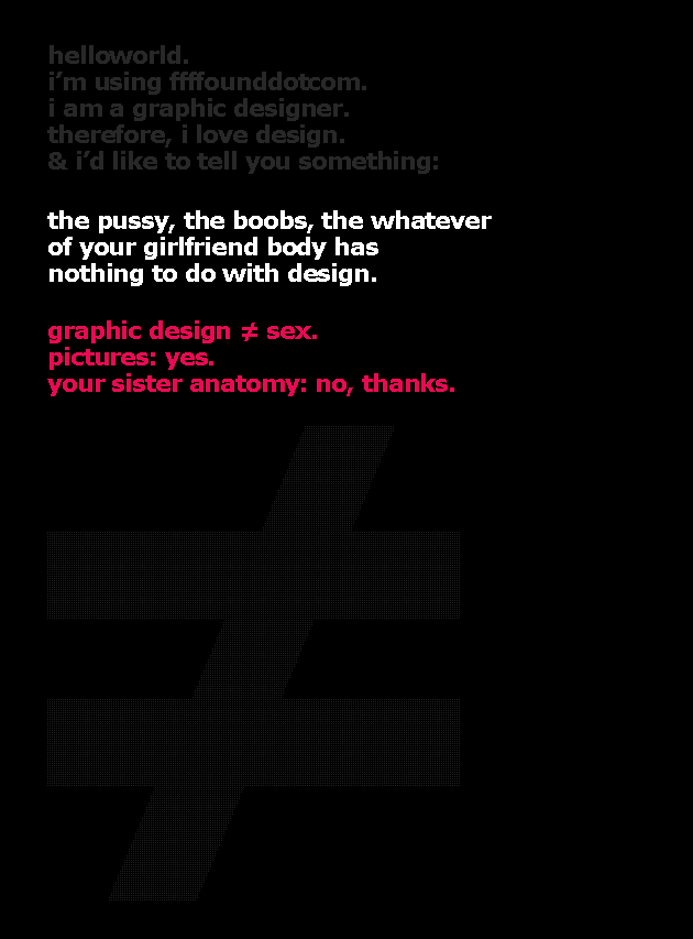 helloworld. i’m using ffffounddotcom. i am a graphic designer. therefore, i love design. and i’d like to tell you something: