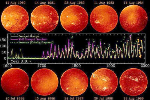 ARTICLE [“Sunspot is Harbinger of New Solar Cycle (…)”] (NOAA) LINK/IMAGES [solar cycle 24 prediction] (NOAA) ARTICLE [“Scientists Predict Big Solar Cycle”] (NASA) IMAGE [graph of sunspot activity since 1870] ARTICLE [solar cycle] (Wikipedia)