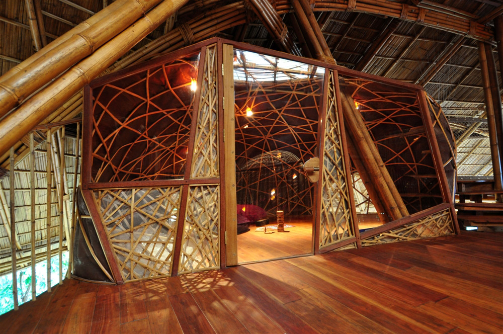 The building houses an Auditorium/Cinema for films, lectures and plays, a library with books on permaculture and local traditions, an art room, a music room and a fashion room. (via)