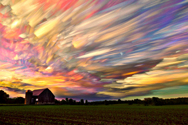Canada-based photographer Matt Molloy brings sky photography to a new level. By stacking hundreds of separate sky shots he is able to achieve an incredible brush-like effect. Each final picture in his “Smeared Sky” series is a result of combining from 100 to 200 photographs.