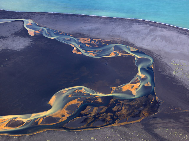 “Iceland is a wonderful country; I would even say that it is a true paradise for all the photo shooting-lovers. But what has become a real discovery for me is the bird’s eye view of the rivers flowing along the black volcanic sand. It is an inexpressible combination of colors, lines, and patterns.” (via)