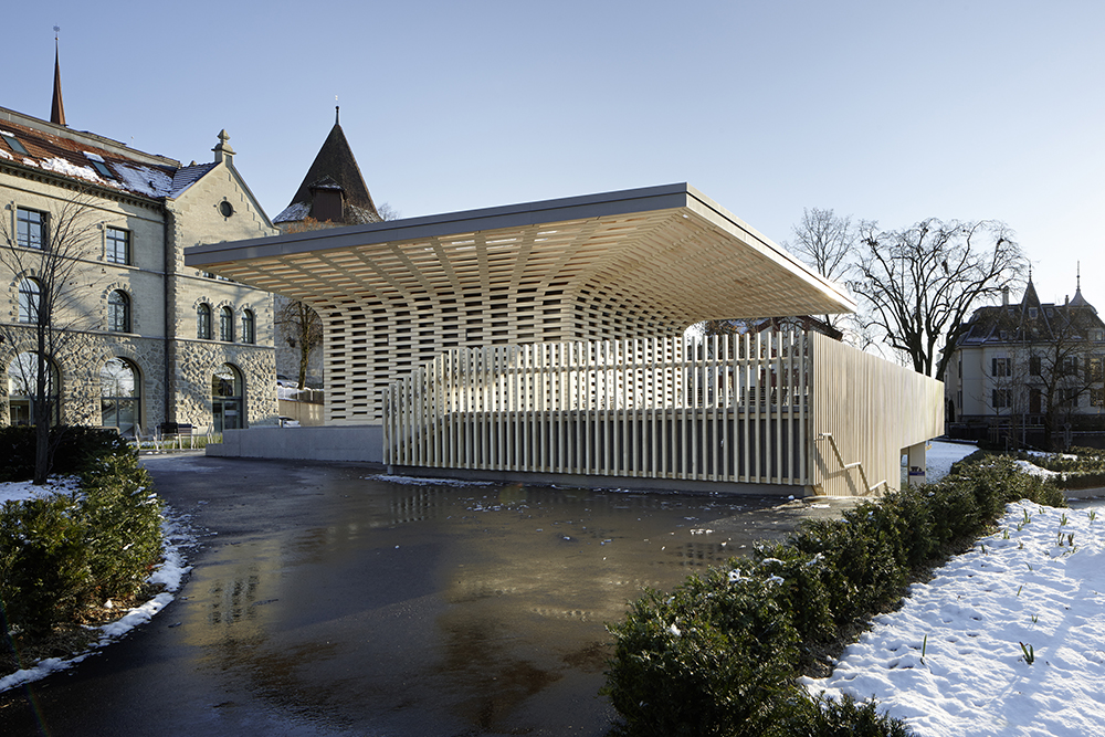 The deceivingly simple radial timber cladding meant every individual piece is unique and needed to be manually cut.