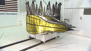 “This animation shows the prototype starshade, a giant structure designed to block the glare of stars so that future space telescopes can take pictures of planets.”