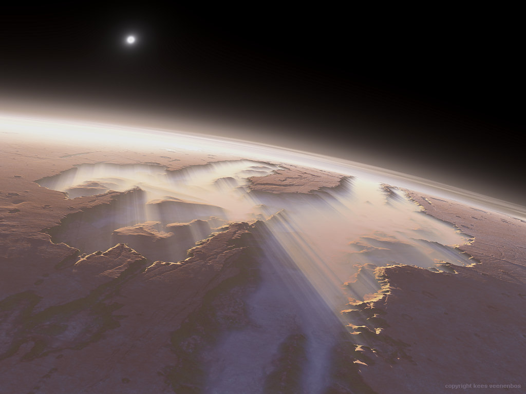 These aren’t actual images from HiRISE orbiter camera. They are topographical renderings made by Dutch artist Kees Veenenbos using data from NASA’s Mars Orbiter Laser Altimeter, an instrument aboard the space agency’s Mars Global Surveyor that mapped the planet from 1997-2006.