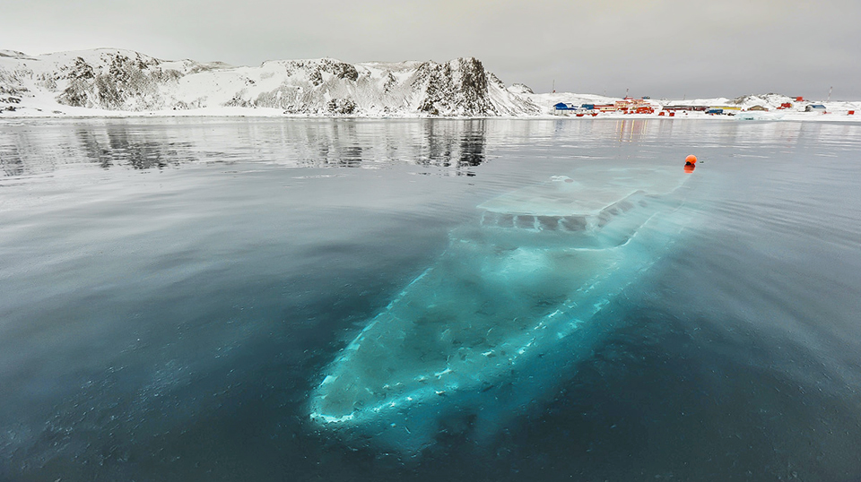 ' .SUNKEN YACHT IN ANTARCTICA PHOTOGRAPH BY RUSLAN ELISEEV @ 35PHOTO.RU .