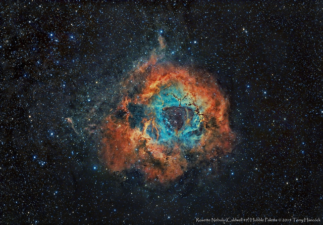 Back to archiveRosette Nebula (Caldwell 49) Hubble PaletteJuly 25, 2014·Space Rosette Nebula (Caldwell 49) Hubble Palette | Terry Hancock