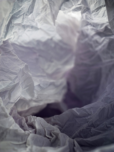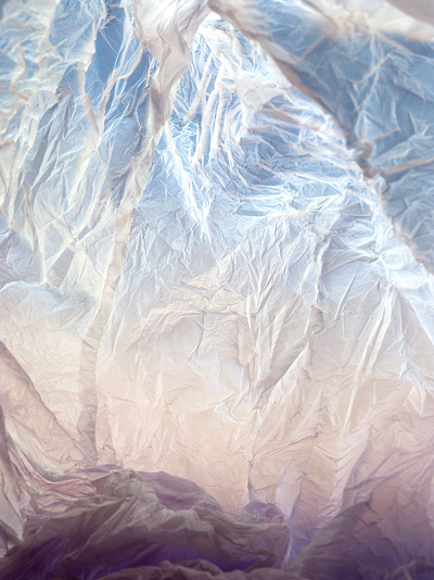 Vilde J. Rolfsen uses light and colored backgrounds to make these otherworldly plastic bag landscapes. She finds the bags on the street, an easy task considering Americans blow through over 100 billion a year.