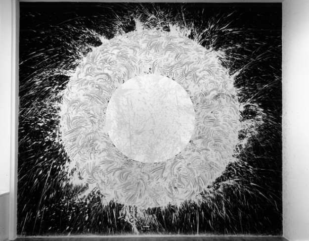 Back to archiveRichard LongAugust 19, 2014·Film & Animation Richard Long White Water Circle, 1991 mud and black paint on wall 159 x 174 inches 4 x 4.4 m SW 91349