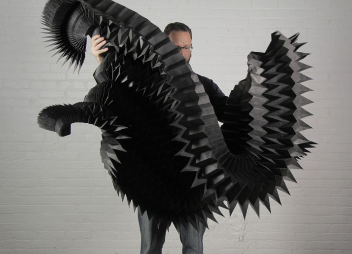 Artist and designer Matt Shlian describes himself as a paper engineer. His work is somewhat atypical, a hybrid between art and science, where paper folding meets nanotechnology. Shlian, who began his journey by studying ceramics, found that he was interested in a variety of artistic endeavours including glass, painting, performance and sound. Although he earned a joint major in ceramics and print media, far from making traditional ceramics or print works, Shlian would instead create large digital prints and folded pop-up spreads.