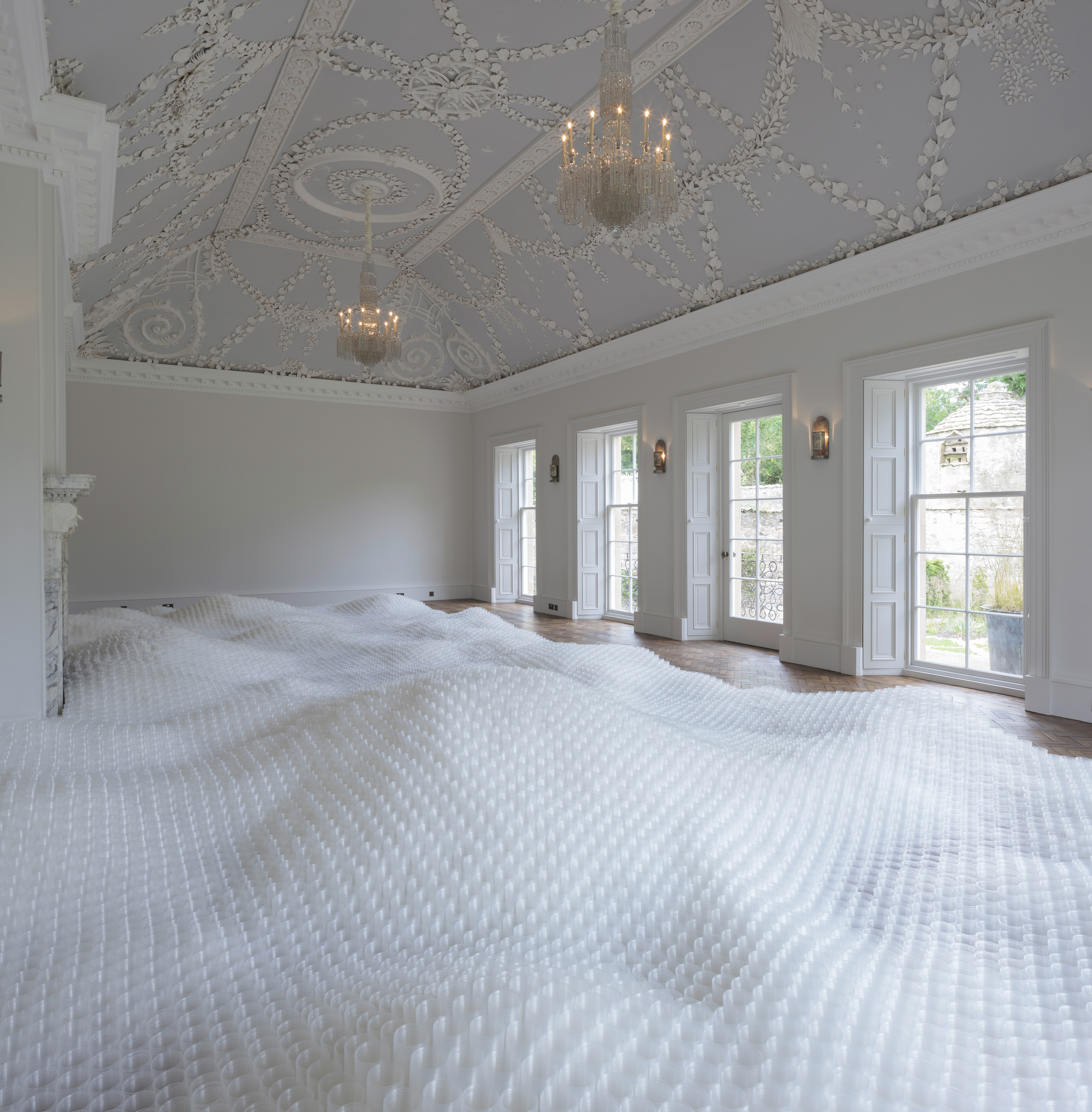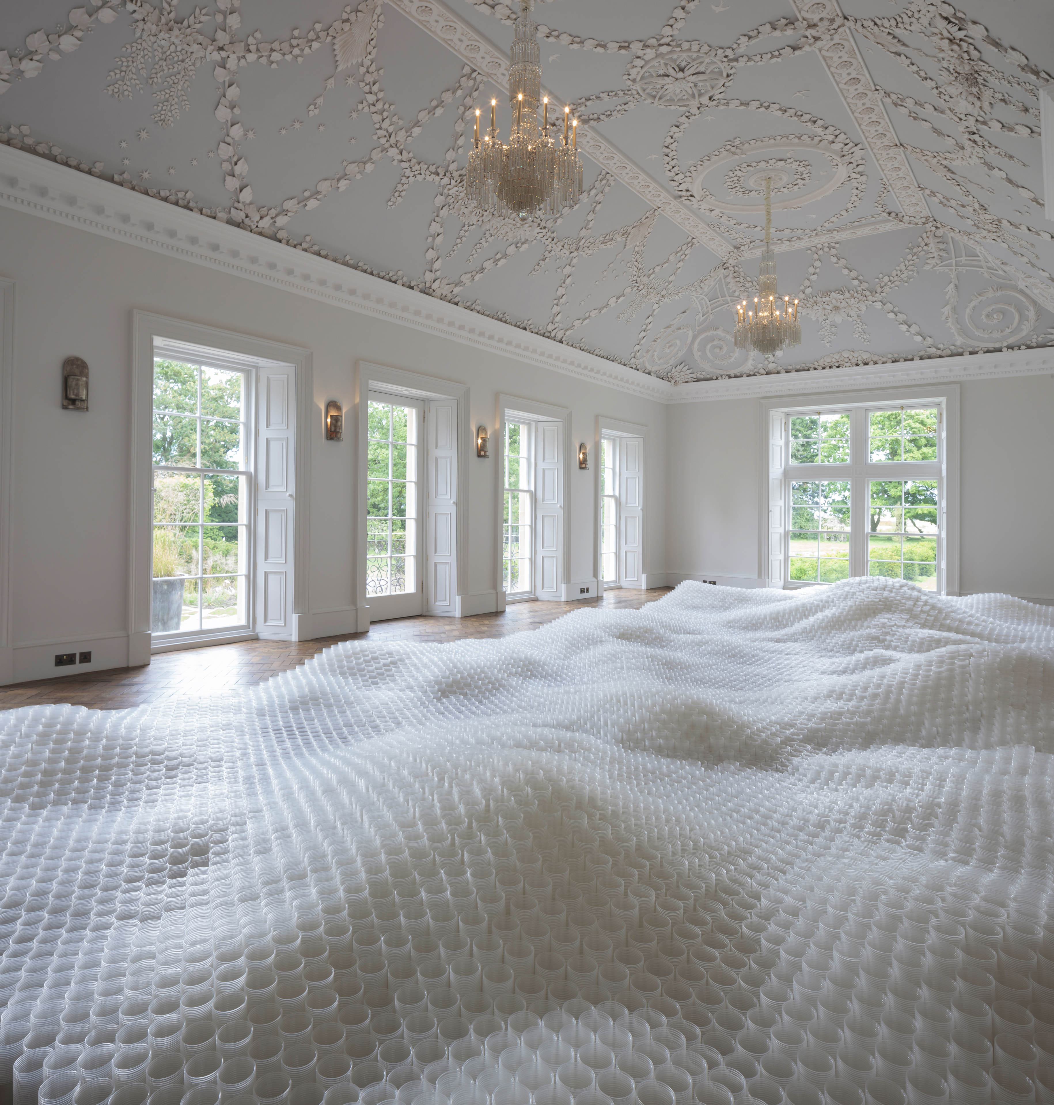 Jupiter Artland in Edinburgh presents three sculptural installations by Tara Donovan. This presentation is Donovan’s first large-scale solo exhibition in the United Kingdom and the first show in The Ballroom at Bonnington House, a space never before open to the public.