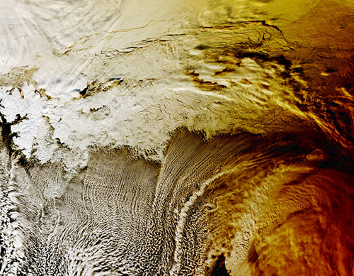 NASA’s Terra satellite captured an eclipse’s shadow over the clouds in the Arctic Ocean on March 20, 2015. On March 8 and 9, the moon will throw some serious shade on Southeast Asia during a total solar eclipse. When the moon blocks the sun in today’s total solar eclipse, will it have a noticeable effect on temperature?