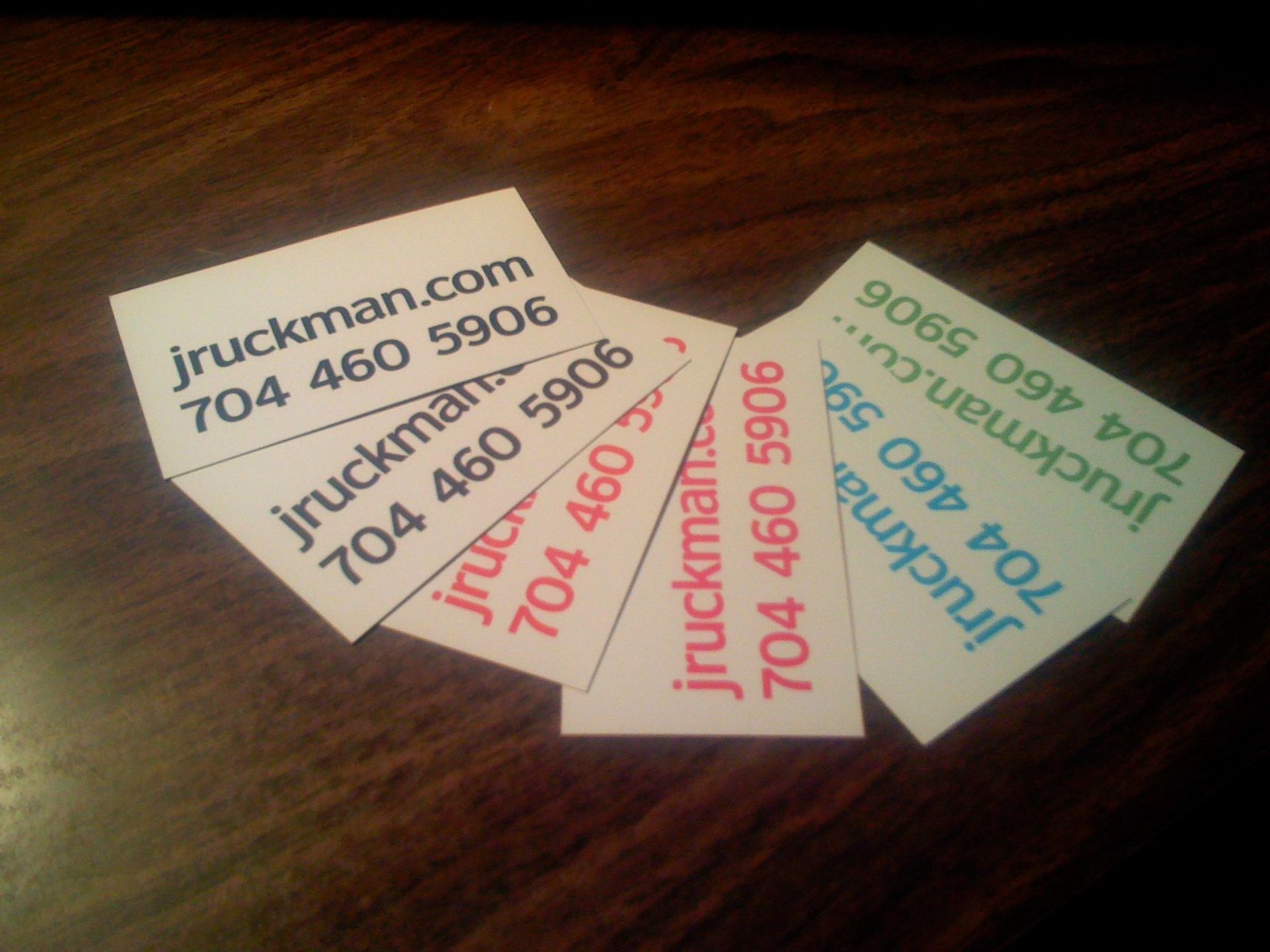 In 2008 I made some fun multi-color business cards for myself. Forgive the photos, they were taken on a 1st-generation iPhone.