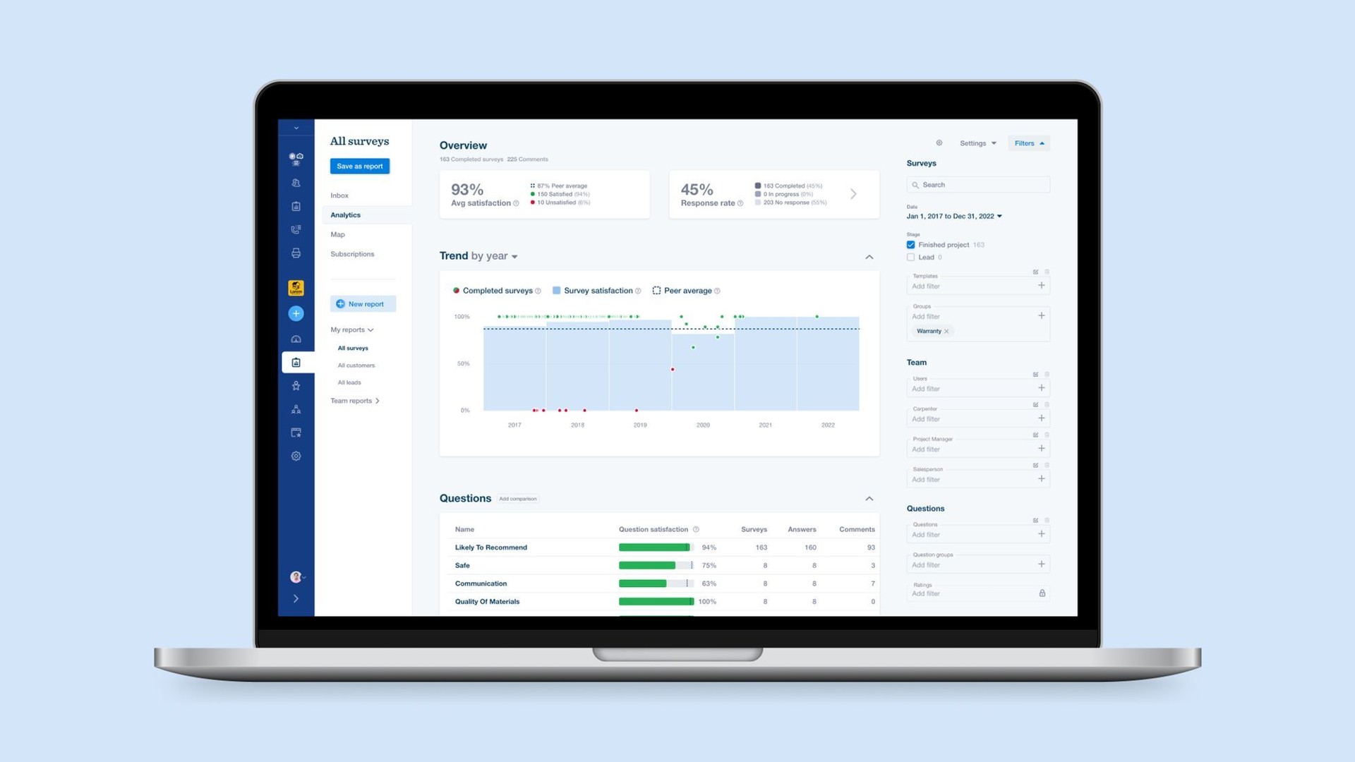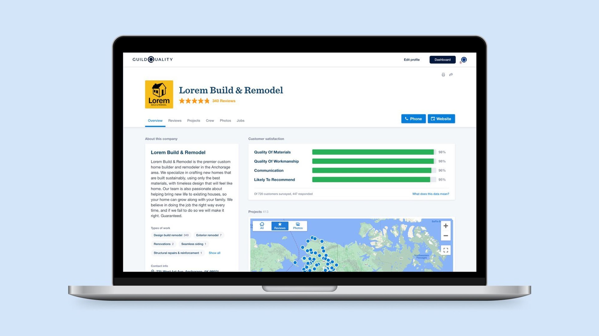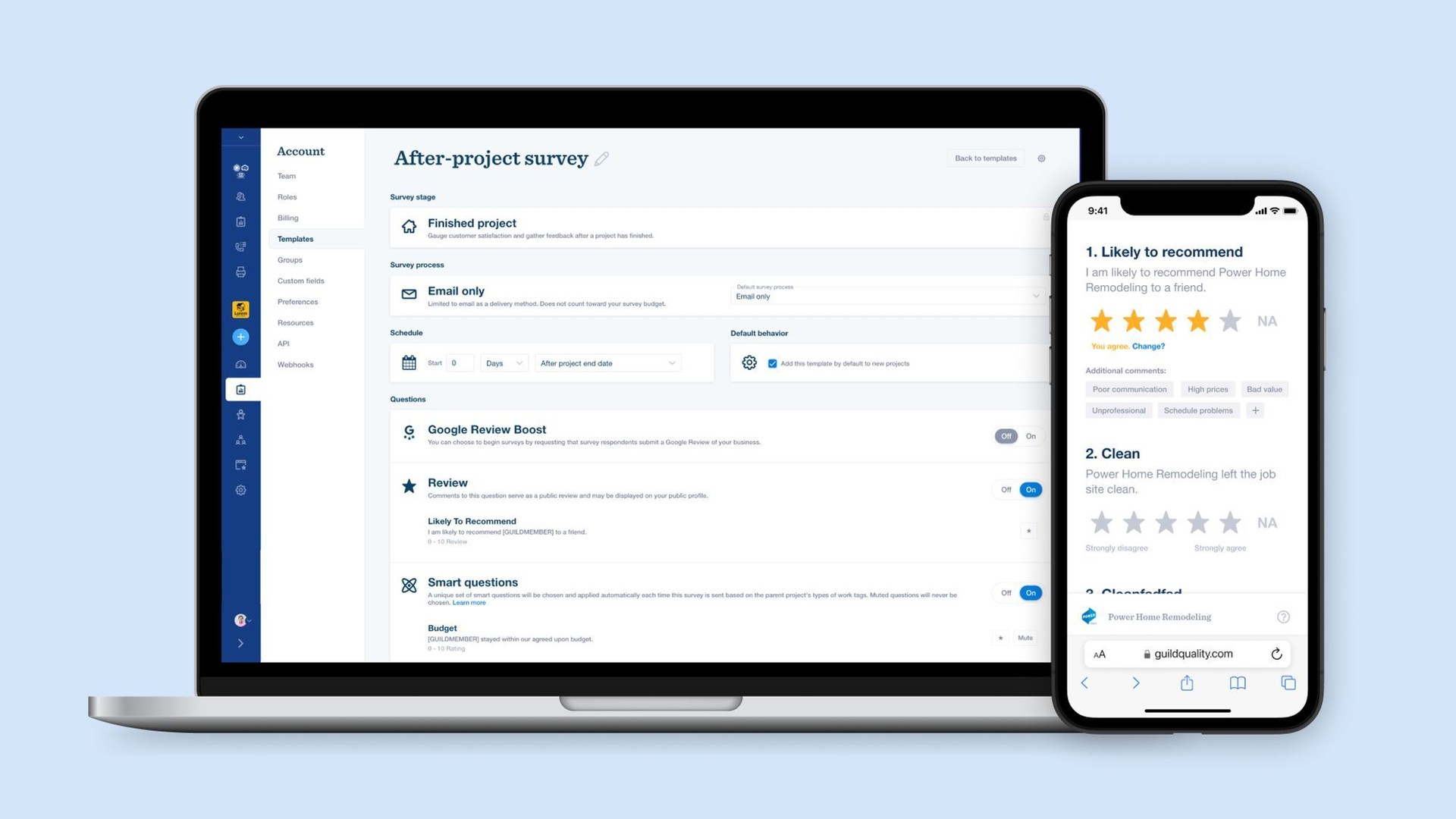 A big driver of GuildQuality's growth are its relationships with large contractor networks. These partners conduct surveys across their network, and their networks often spanned both versions of the platform.